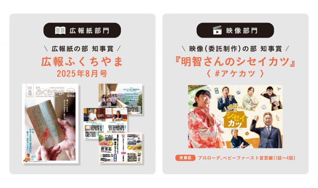 このたび、京都府内の自治体広報活動を表彰する「京都広報賞」において、当社が携わった制作物が評価され、令和7年度は2部門で「知事賞」を受賞いたしました。